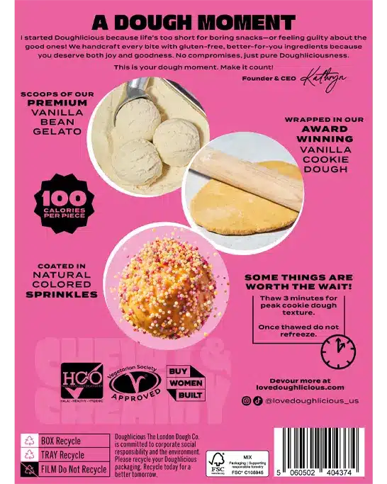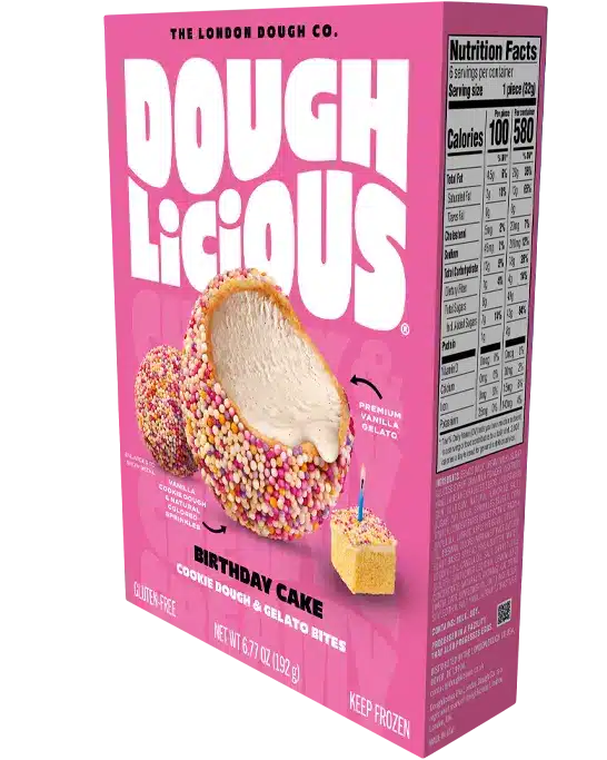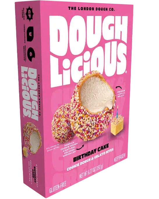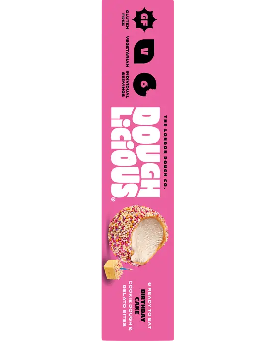 Stretch the limits of frozen snacking with cookie dough & gelato bites. Doughlicious cookie dough unites with creamy gelato then is dusted in cookie crumb. Our hand-crafted, gluten-free certified snacks are made in London, England with the finest ingredients and renewable electricity to make them super sneaky good!