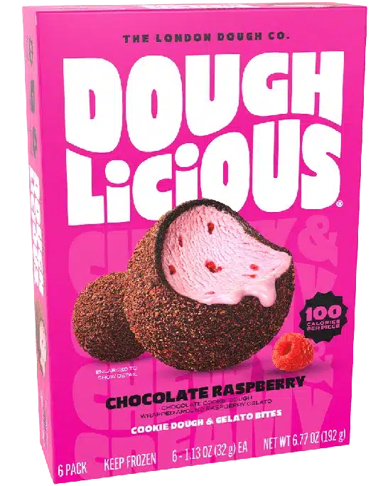 Decadent Doughlicious chocolate cookie dough wrapped around fresh creamy gelato then dusted in freeze-dried raspberry and chocolate cookie crumbs.